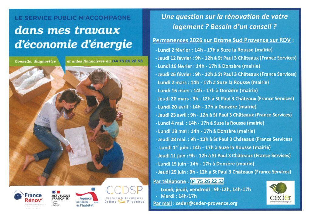 Vous trouverez ci-dessous les permanences du CEDER pour le 1er semestre 2026 :