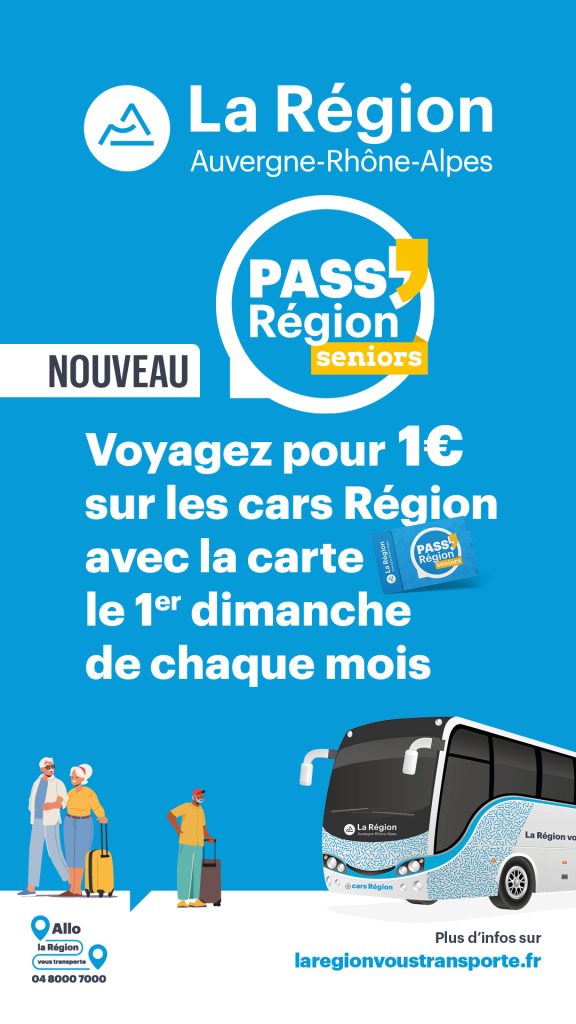 À partir du 1er février, tous les cars Région (hors lignes touristiques) accepteront la carte Pass Senior, disponible gratuitement auprès de la Région Auvergne-Rhône-Alpes. Destinée aux personnes de plus de 65 ans, cette carte propose des réductions chez de nombreux partenaires et permettra également de voyager à bord des cars Région pour 1 euro le trajet, chaque premier dimanche du mois. Une opportunité de se déplacer à moindre coût, quelle que soit la distance parcourue.