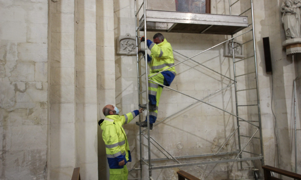 Le samedi 21 novembre 2020, les élus se sont retrouvés dans notre belle église pour décrocher le tableau situé au-dessus de la porte de l’église, caché des regards, en quelque sorte et quel dommage !